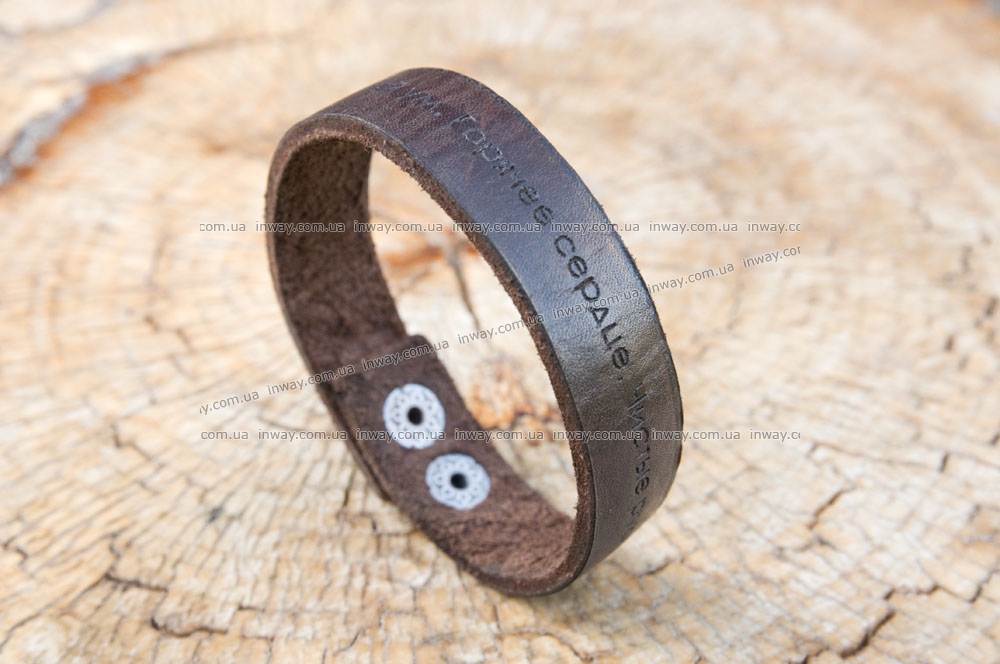 Кожаный браслет с гравировкой по вашему заказу. Текст гравировки возможен любой, 5-10 слов.