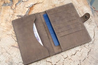 Бумажник Вдорогу из натуральной кожи для нагрудного кармана. Имеет 1 отделение для купюр, 2 кармана для документов и 7 кармашков для пластиковых карт. Носить его следует во внутреннем нагрудном кармане верхней одежды, в сумке или в портфеле. Предпочтителен для людей, носящих одежду классического стиля.