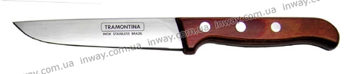 Длина общая: 23см. Длина клинка: 11см. Ширина клинка: 3см. Толщина обуха: 1мм. Заточка: клиновидная. Материал рукояти: прессованое дерево. Производитель: Tramontina (Бразилия). Серия: POLYWOOD.