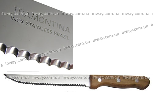 Для ценителей натуральных материалов компания Tramontina изготовила ножи с рукоятью из дерева. Нержавеющая сталь AISI 420 обладает хорошей пластичностью, высокой ударной вязкостью, коррозионной стойкостью.