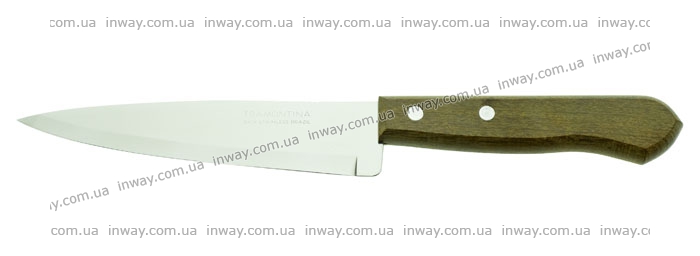 Длина общая: 23,5см. Длина лезвия: 13см. Толщна обуха: 0,75мм. Ширина клинка: 28мм. Вес:53 г. Твёрдость клинка: 53ед. HRC. Материал клинка: нержавеющая сталь AISI 420. Материал рукояти: дерево. Производитель: Tramontina (Бразилия).