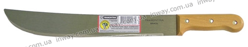 Длина общая: 48см. Длина лезвия: 35см. Ширина клинка: 5см. Толщина обуха: 2мм. Вес: 350гр. Материал клинка: углеродистая сталь SAE 1070. Твёрдость металла: 55-60ед. HRC. Материал рукояти: дерево. Производитель: Tramontina (Бразилия).