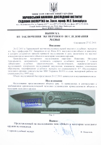 Даём. Под фотографией ножа - заключение экспертизы о том, что нож не является ХО.