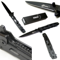 Раскладывается нож двумя способами: - указательным пальцем со взмахом руки, - большим пальцем за цилиндрический штифт. Складывается нож также одной рукой, при нажатии большим пальцем на запирающую пластину (линейный замок).