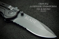 Клинок складного ножа изготовлен в форме танто. Заточка с серейторным участком повышает режущие и пилящие возможности ножа. Серейторная заточка и рефлёная рукоять делает удобным использование ножа для распила веток.