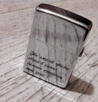 На зажигалке возможна лазерная гравировка. Для заказа гравировки, пришлите текст и пожелания гравировки в вайбер или на почту. Стоимость гравировки - от 70грн